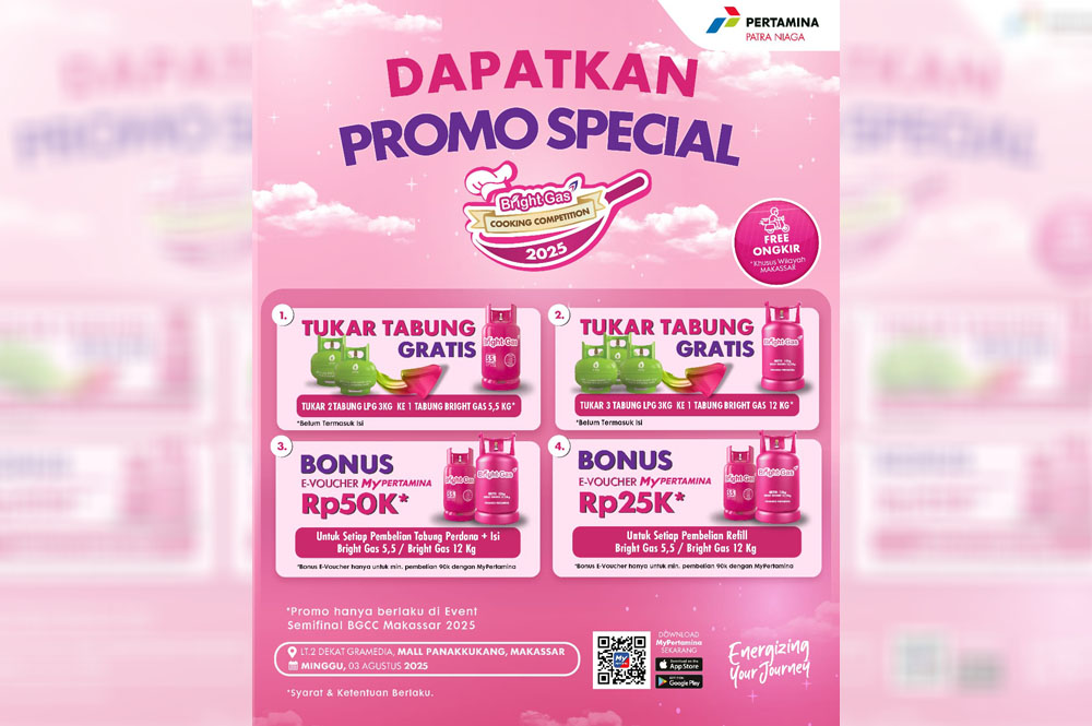 “Bright Gas Cooking Competition bukan hanya selebrasi kuliner, tapi juga bagian dari upaya kami untuk mengenalkan gaya hidup memasak yang lebih cerdas dan aman melalui Bright Gas. Kami mengajak seluruh masyarakat Makassar untuk hadir, menikmati acaranya, dan memanfaatkan berbagai promo menarik,” ujar Suteja.