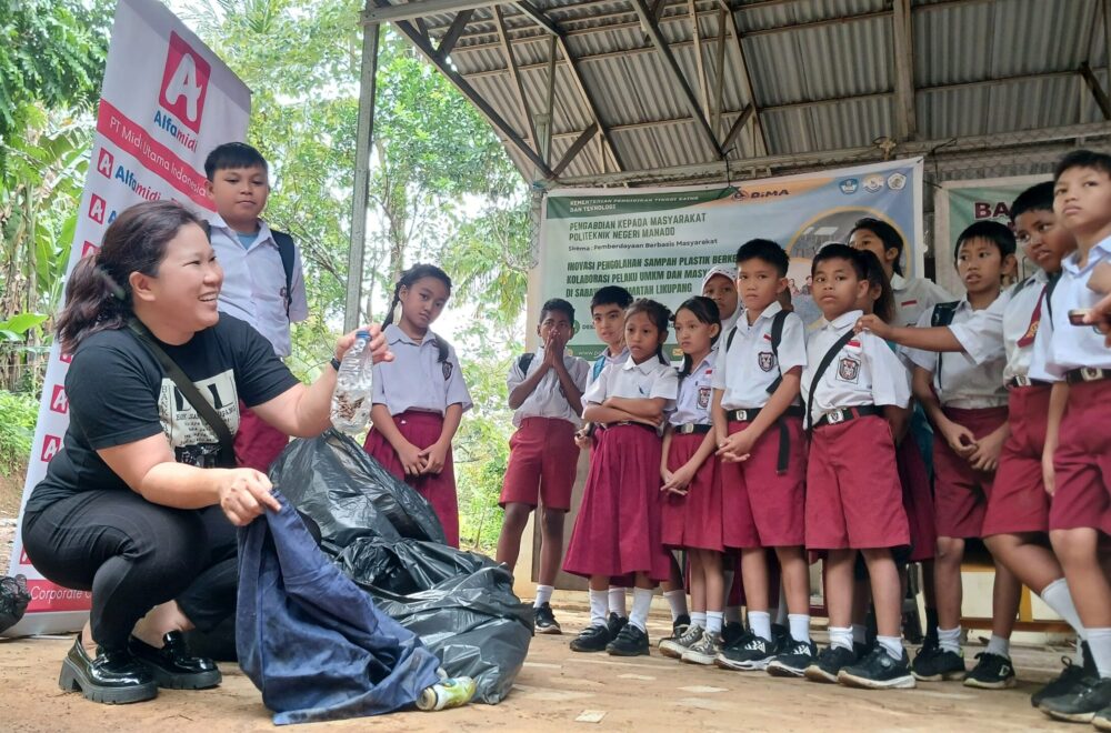 Barometer.co.id-Manado. Alfamidi Cabang Manado lewat program Kampung Merdeka mengedukasi siswa sekolah dasar (SD) cara kelola sampah plastik menjadi rupiah. Program kampung merdeka ini bekerjasama dengan Bank Sampah Induk Likupang (BSIL).