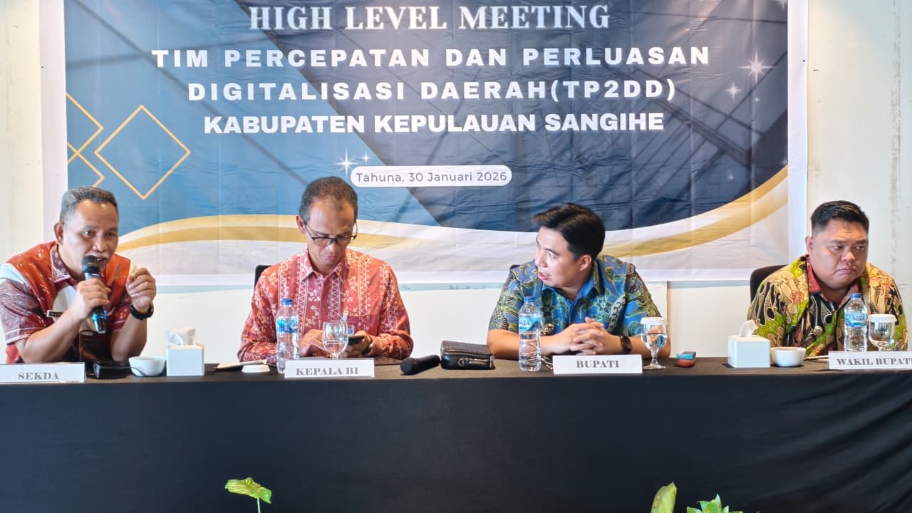 Barometer.co.id-Tahuna. Bank Indonesia bersama Pemerintah Kabupaten Kepulauan Sangihe menyelenggarakan High Level Meeting (HLM) Tim Pengendalian Inflasi Daerah (TPID) dan Tim Percepatan dan Perluasan Digitalisasi Daerah (TP2DD) sebagai wujud sinergi menjaga kestabilan harga serta percepatan digitalisasi transaksi pemerintah daerah (Pemda).