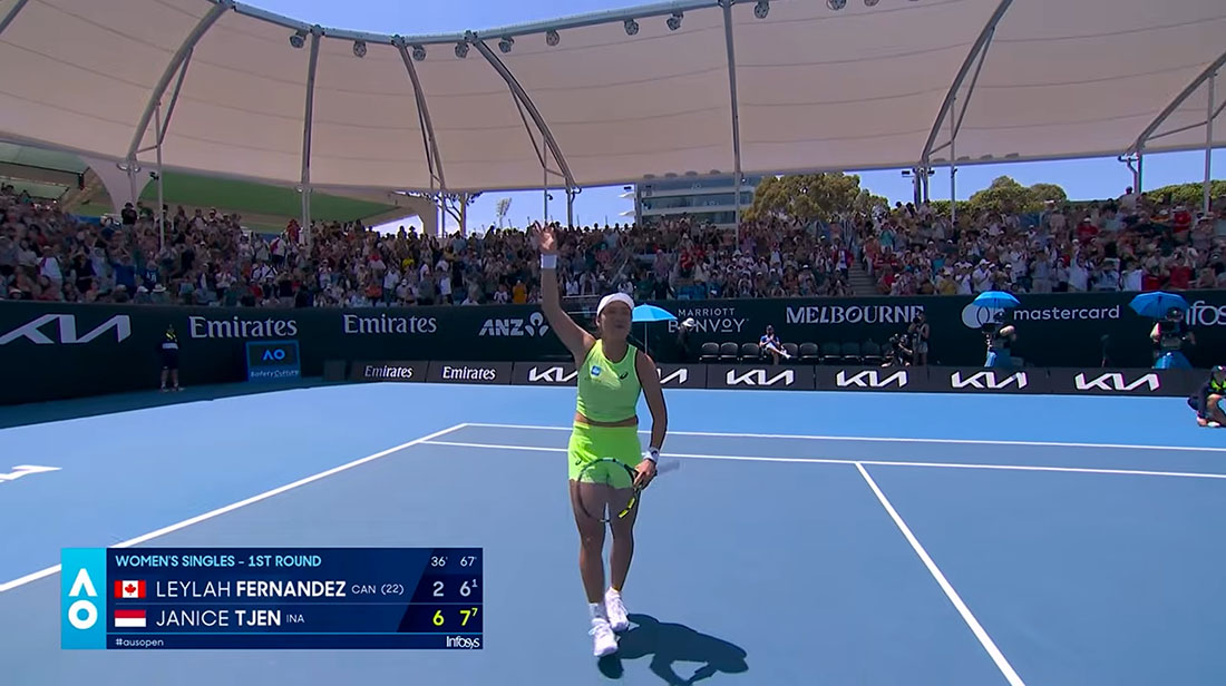 Barometer.co.id-Jakarta. Janice Tjen kembali menorehkan kemenangan pada babak utama pertama Grand Slam, kali ini di Australia Open. Janice mengalahkan unggulan ke-22 Leylah Fernandez, 6-2, 7-6 (1) dalam satu jam 43 menit di ANZ Arena, Melbourne, Selasa (20/01/26).