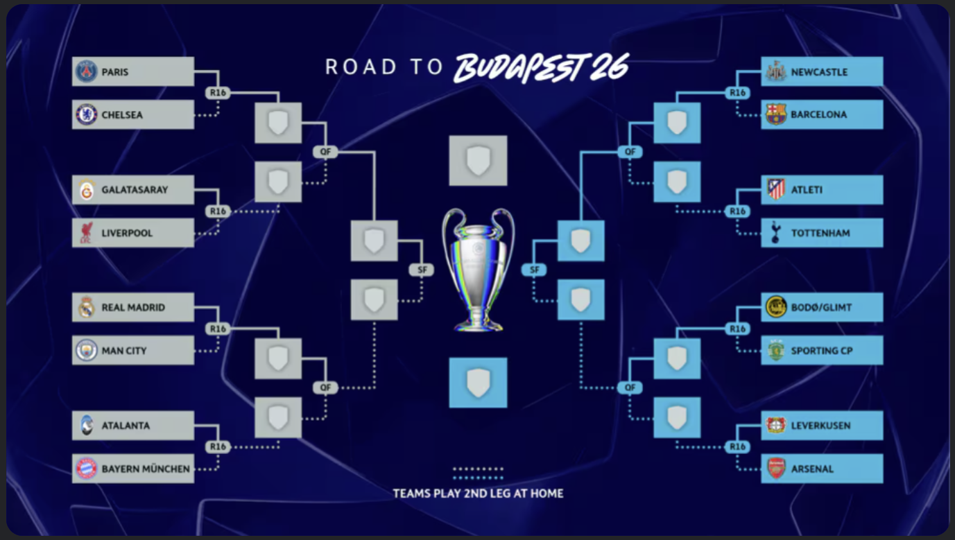 Barometer.co.id-Jakarta. Pengundian babak 16 besar Liga Champions 2025/2026 rampung dilaksanakan pada Jumat (27/2) waktu setempat di Nyon, Swiss dan Paris Saint-Germain (PSG) akan menghadapi Chelsea sedangkan Real Madrid berjumpa Manchester City.